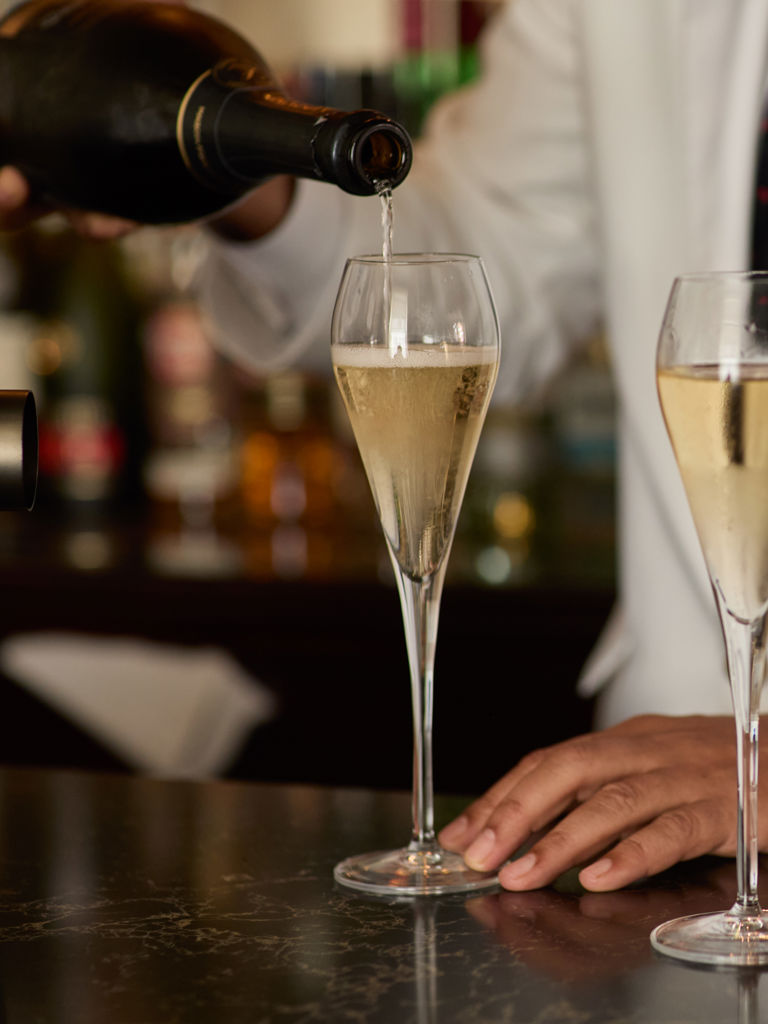 Guests can enjoy a bottle of Lanson Le Black Reserve paired with our baked Camembert, served with spiced pear and honeyed walnuts, and accompanied by Milk Marc de Champagne Truffles.
